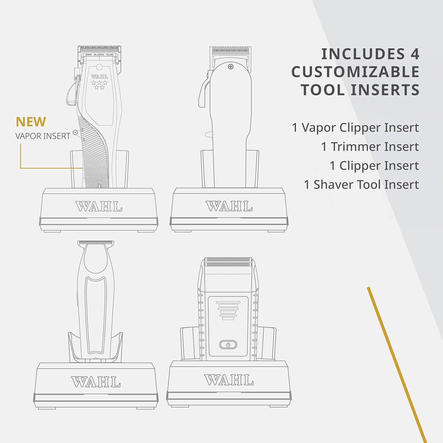 Wahl Professional Low Profile Charge Stand Weighted Base with Rotating Cord 4 Interchangeable Inserts Compatible with 5V Cordless Wahl Clipper Trimmer Tools Black